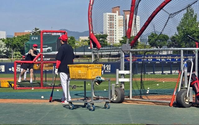 훈련 소화하고 배팅볼 투수 자처…후배들 타격훈련 도와