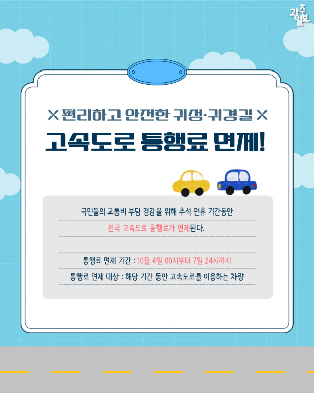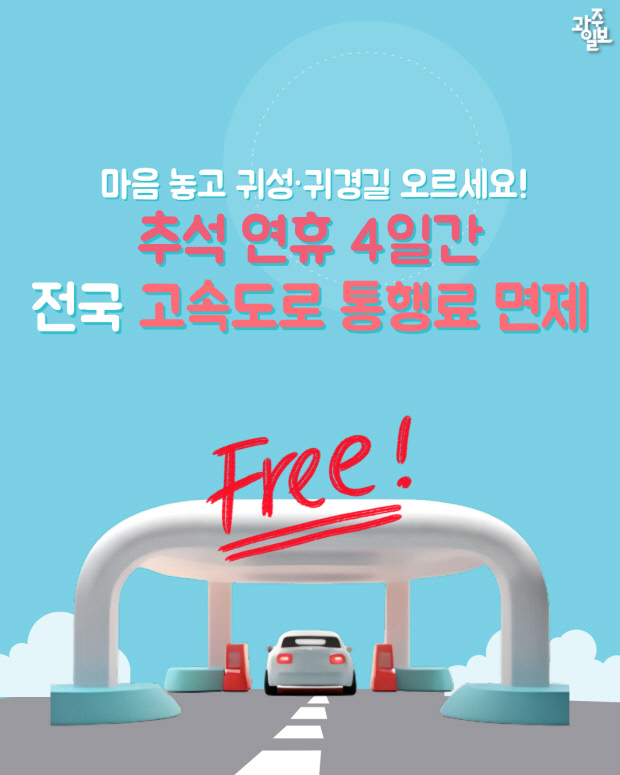 [광클] 추석 연휴 4일간 전국 고속도로 통행료 ‘면제됩니다’