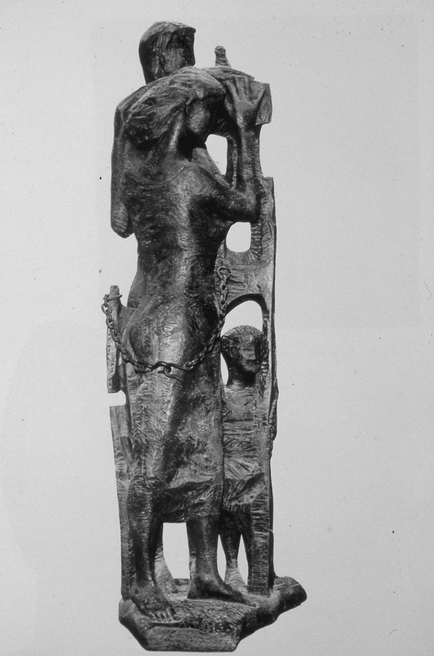 양두환의 ‘제20회 국전’ 문공부장관상 수상작 ‘풍요’(1971)는 과일광주리를 머리에 인 여인 앞에 사내아이를 세운 모자상이다. 통나무 표면에 잔잔한 칼맛으로 질감을 내면서 엷은 옷으로 신체 골격과 살붙임을 드러냈다. 이듬해 문공부장관상을 수상한 ‘상황 72’(1972)는 이전의 서정성 대신 시사성을 담은 야심작이다. 애절한 표정의 두 남녀가 높은 칸막이를 사이에 두고 서 있고, 남자 손에는 비둘기, 아래쪽에 사내아이, 구멍이 뚫린 장벽에는 쇠사슬 오브제를 구성했다. 당시 민족분단과 이산가족 현실을 타개하기 위한 남북적십자회담(1972~73년)과 ‘7.4남북공동성명’(1972) 발표 등 남북 교류와 정치 교섭이 진행되던 시기의 시의성이 담긴 조형작업이다.