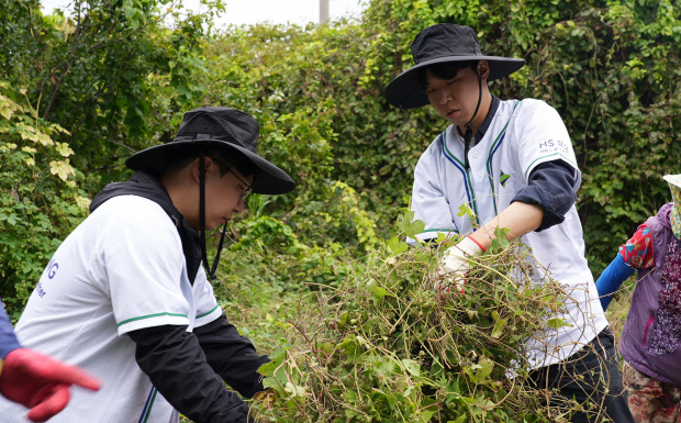 19일 HS효성에 따르면 지난 17일 HS효성첨단소재 임직원과 국립생태원, 서천군 생태관광협의체, 지역주민 등 50여명은 유부도 일대에서 생태계 교란 식물을 제거하고 해양 쓰레기를 수거했다.