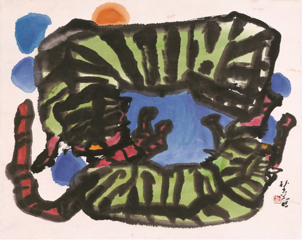 ‘감꽃 향기’, ‘기억의 숲’과 같은 ‘옛날옛적에·호랑이’ 연작은 작가 특유의 따뜻한 정서와 한국적 미감을 느낄 수 있는 작품으로 평가된다.
