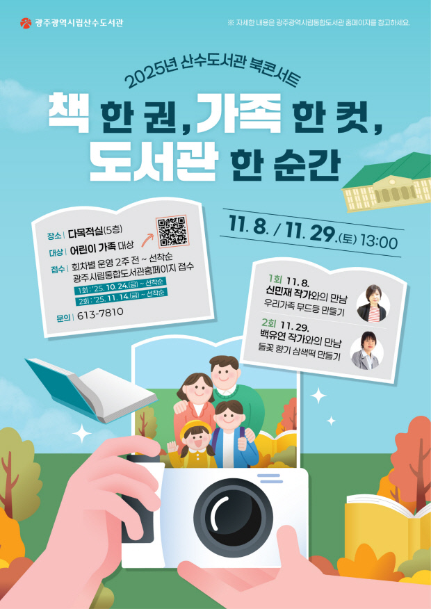 11월 8·29일, 광주시립산수도서관 ‘가족 북콘서트’…책으로 잇는 한 장면의 추억