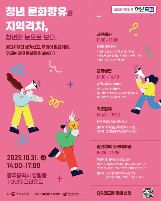 ‘청년 문화향유 격차’ 해법, 광주에서 찾는다…대한민국 청년총회 31일 양림동 개최