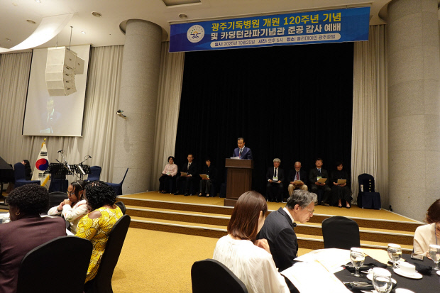 광주기독병원이 지난 25일 홀리데이인 광주호텔에서 ‘개원 120주년 기념 및 카딩턴라파기념관 준공 감사예배’를 개최했다. <사진>