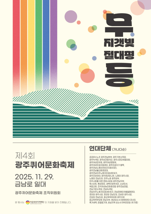 ‘무등: 무지갯빛 절대평등’…제4회 광주퀴어문화축제, 11월 29일 금남로서 개최