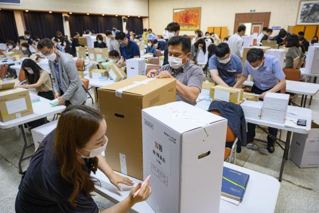![]() 중앙선거관리위원회 도서관에 올라온 후보자선전물을 전수 조사한 결과 광주 11명 전남 31명 등 광역의원 당선인 절반의 공약을 확인할 수 없었다. 지난 2022년 제8회 6·1전국동시지방선거일을 앞두고 투표 용지를 분류해 상자에 옮겨담는 모습. <광주일보 자료사진>