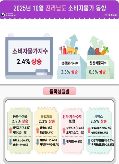 ![]() 2025년 10월 전남도 소비자물가동향<호남지방통계청 제공>  |