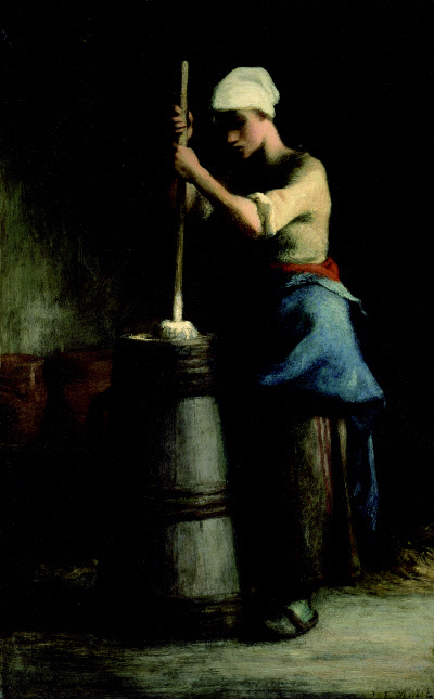 ![]() ‘버터를 휘젓는 젊은 여인’(밀레 작·왼쪽), ‘절구질하는 여인’. 두 작품은 전반적인 구도와 분위기에서 비슷한 느낌이 있다. 박수근이 얼마나 밀레의 작품을 열정적으로 연구했는지를 잘 보여준다. <소동 제공> |
