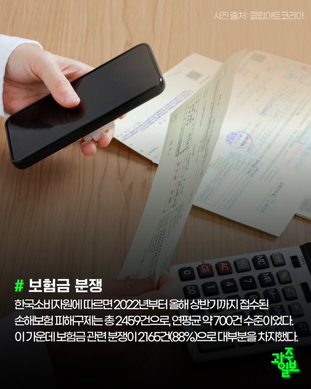 한국소비자원에 따르면 2022년부터 올해 상반기까지 접수된 손해보험 피해구제는 총 2459건으로, 연평균 약 700건 수준이었다. 이 가운데 보험금 관련 분쟁이 2165건(88%)으로 대부분을 차지했다.