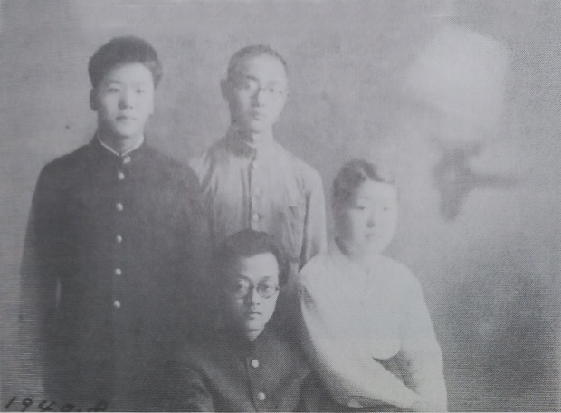 ![]() 1940년 8월 정추 형제(왼쪽에서 시계방향으로 동생 권, 정추, 누나 경희, 형 준채). |