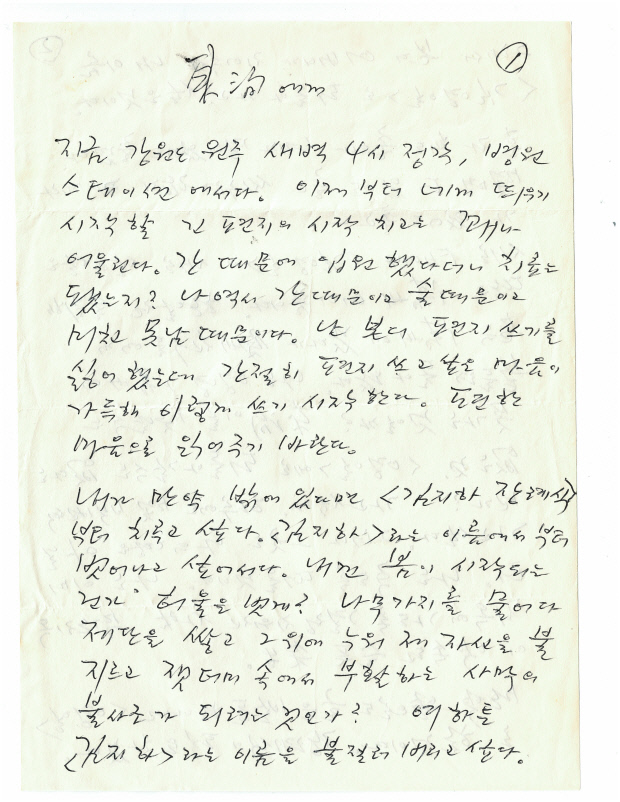 ![]() 1986년 7월 5일 김지하 시인이 이동순 시인에게 보낸 육필편지. <창비 제공> |