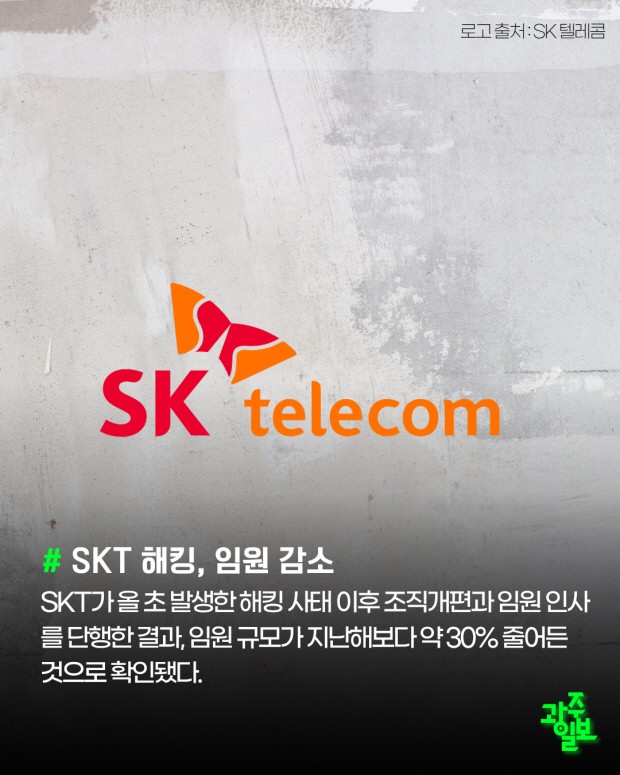 SKT가 올 초 발생한 해킹 사태 이후 조직개편과 임원 인사를 단행한 결과, 임원 규모가 지난해보다 약 30% 줄어든 것으로 확인됐다.