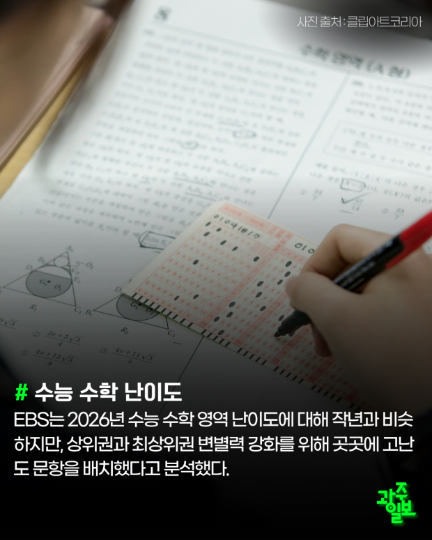EBS는 2026년 수능 수학 영역 난이도에 대해 작년과 비슷하지만, 상위권과 최상위권 변별력 강화를 위해 곳곳에 고난도 문항을 배치했다고 분석했다.