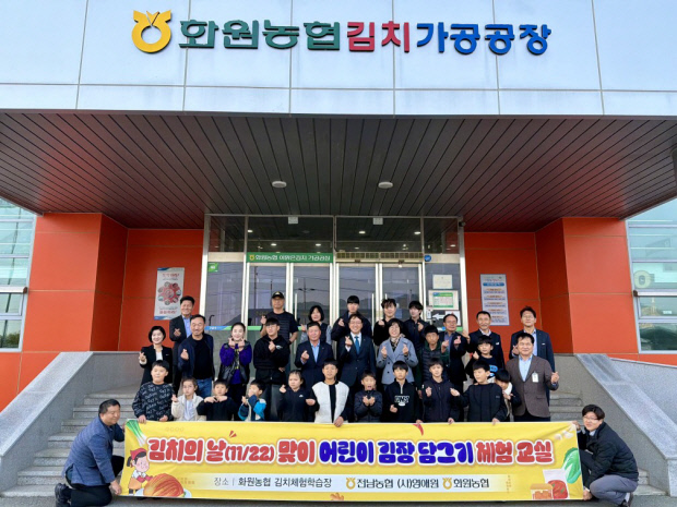 ![]() 농협전남본부는 14일 해남 화원농협 김치체험학습장에서 아동복지시설 영애원 원생·자원봉사자 등이 참여한 가운데 김치의 날(11월 22일)을 앞두고 농산물 소비 촉진을 위한 ‘어린이 김장 담그기 체험교실’을 진행했다.<농협전남본부 제공> |