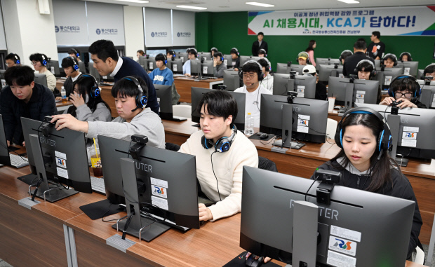 ![]() 나주시 빛가람동 동신대 혁신융합캠퍼스에서 학생들이 KCA 체험 프로그램에 참여해 AI 면접을 보고 있다./나명주 기자 mjna@kwangju.co.kr |