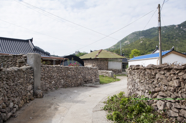 ![]() 신안 비금도 내촌마을 돌담길 전경. 앞마당격인 바다에서 불어오는 세찬 바람을 막기 위해 집집마다 돌담을 쌓아놓았다. <신안군 제공> |