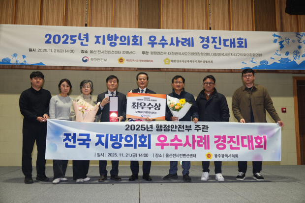 광주시의회가 행정안전부 주관 ‘2025년 지방의회 우수사례 경진대회’에서 최우수상을 받았다.