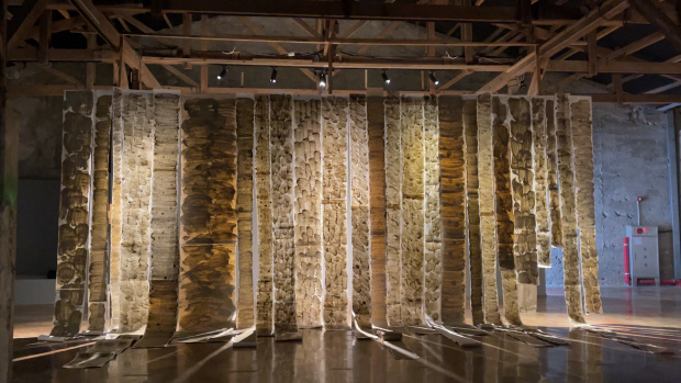 ![]() 소금박물관 전시실에 설치된 전희경의 ‘Mud Drawing’. |