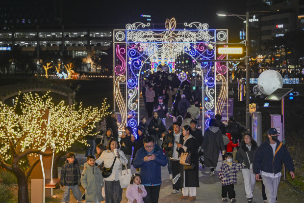 ![]() 22일 나주시 빛가람호수공원 일원에서 진행 중인 2025 빛가람 빛정원 페스타를 찾은 시민들이 산책로 곳곳의 빛 조형물 사이를 거닐며 축제의 밤을 만끽하고 있다. 설치한 조명 시설은 축제 종료 후에도 내년 1월4일까지 빛을 밝힐 예정이다.