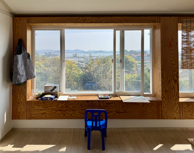 행촌미술관에서 지난 20일까지 ‘바람이 시작되는 곳’ 전시를 선보인 이은미 작가도 이마도에 머물며 작업을 이어가고 있다. 그의 그림에는 빛에 따라 색이 달라지며 반짝이는 윤슬, 저녁이면 서서히 어둠이 내려앉는 숲의 결이 차분하게 스며 있다. 작가의 방에는 큰 통창이 여러 개 나 있어, 바다 위로 해가 떠오르고 사라지는 과정을 바라볼 수 있다.