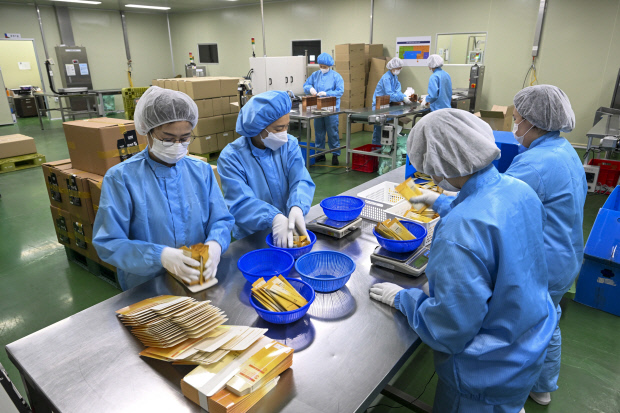 ![]() NPK 직원들이 위생복을 착용한 상태로 제품을 포장하고 있다. /김진수 기자 jeans@ |