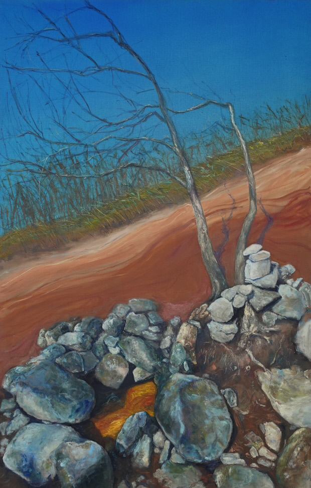 ‘드러난 뿌리, 드러난 샘’은 돌더미 속에서도 악착같이 뿌리를 내린 나무를 초점화했다. 메마른 황무지의 돌무더기를 뚫고 생명을 피워내는 나무는 안타까움을 준다. 말라비틀어진 나무와 바닥이 드러나버린 샘은 오늘의 우리에게 자연이 주는 엄중한 경고로 읽힌다.