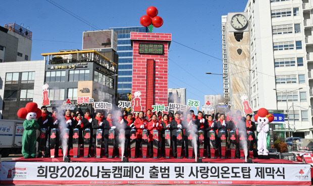 1일 오전 광주시 동구 5·18민주광장에서 희망 2026 나눔 캠페인 출범 및 사랑의 온도탑 제막식이 열리고 있다. /나명주 기자 mjna@kwangju.co.kr