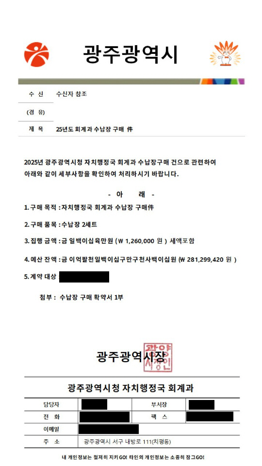 ![]() 광주시청을 가장한 허위공문서 양식. |