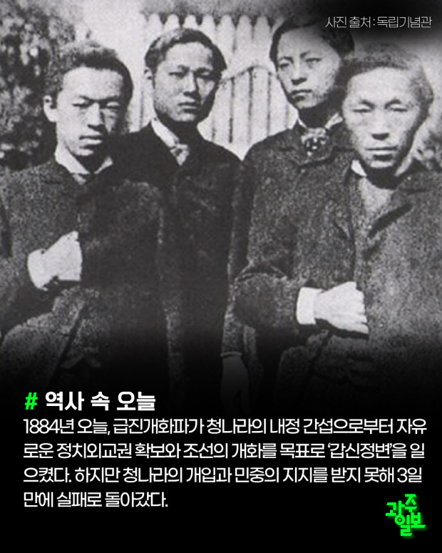 1884년 오늘, 급진개화파가 청나라의 내정 간섭으로부터 자유로운 정치외교권 확보와 조선의 개화를 목표로 ‘갑신정변’을 일으켰다. 하지만 청나라의 개입과 민중의 지지를 받지 못해 3일 만에 실패로 돌아갔다.