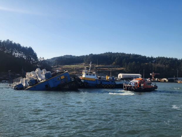 선박은 수심이 얕은 구역으로 이동 조치돼 추가 침수나 전복 위험은 없는 것으로 전해졌다.