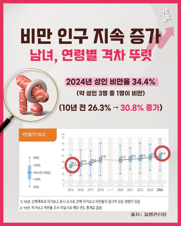 [광클] 우리나라 성인 3명 중 1명 비만, 10년간 30.8% 증가