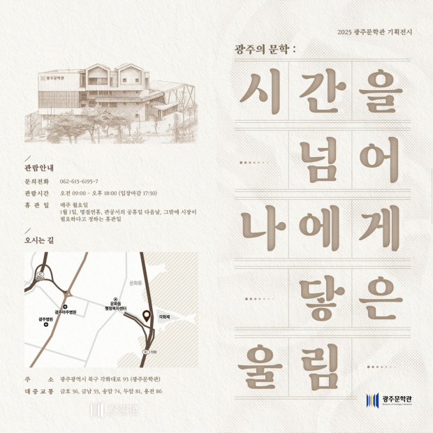 전순희 광주시 문화유산자원과장은 “문학은 시간이 흘러도 변치 않는 인간의 마음을 담는 그릇이라는 사실을 이번 전시를 통해 전하고 싶었다”며 “시민들이 일상 속에서 문학이 주는 따뜻한 위로와 감동을 채워가는 시간이 되길 바란다”고 말했다.