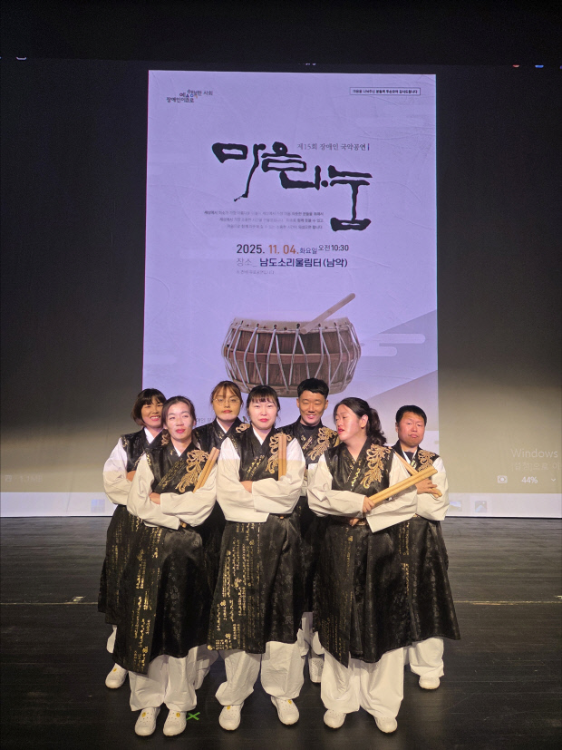 ![]() 진도군장애인종합복지관 이용자들의 ‘신명의 북소리’ 장면. <국립남도국악원 제공> |