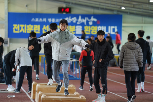 ![]() 해남군은 전지훈련을 하는 스포츠 선수 유치를 위해 시설 확충 및 특화된 서비스를 마련하고 있다. 해남 실내육상트레이닝장에서 훈련중인 선수들. 해남군 제공 |