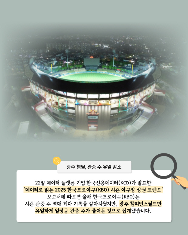 반면 광주는 일평균 1만 5258명의 관중 수를 기록해 전년(1만 7359명) 대비 -12.1%나 감소했습니다.