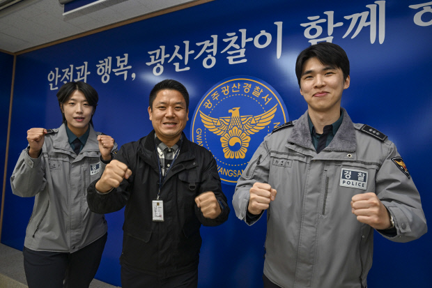 ![]() 광주 광산경찰서 장희영(왼쪽부터) 순경, 이상민 경장, 오재인 경장이 화이팅을 외치며 기념 촬영을 하고 있다. /김진수 기자 jeans@kwangju.co.kr |