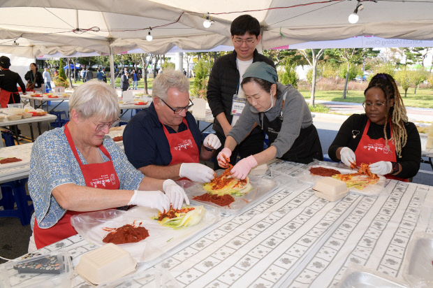 ![]() 올 들어 광주·전남 외지인 방문객이 1억9000만명에 달하며 관련 통계를 집계한 2020년 이후 역대 최다 기록을 세웠다. 지난 10월 말 열린 ‘광주김치축제’에서 외국인들이 김치체험학교에 참여하고 있다.<광주일보 자료사진> |