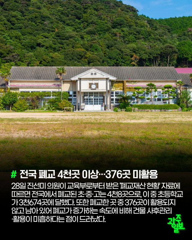 # 전국 폐교 4천곳 이상…376곳 미활용