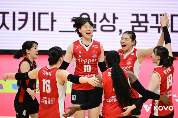 페퍼스는 지난 11월 6일 광주 페퍼스타디움에서 열린 진에어 2025-2026 V리그 여자부 1라운드 마지막 경기, GS칼텍스전에서 세트스코어 3-2으로 승리했다. <KOVO 제공>