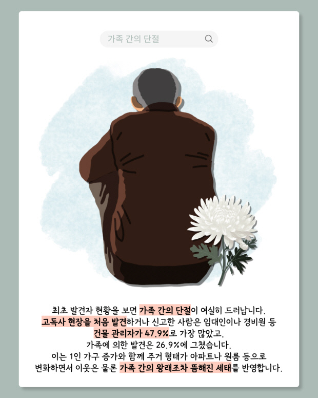 1인 가구의 증가는 곧 고독사 위험군의 확대로 이어졌습니다. 지난 2023년 94명이었던 고독사 수는 2024년 119명으로 25명(26.6%)이나 늘었습니다.