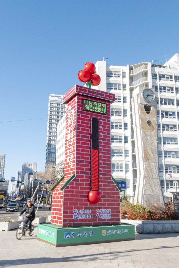 ![]() 30일 오후 광주시 동구 5·18민주광장에 설치된 ‘희망2026 나눔캠페인’ 사랑의 온도탑이 나눔 온도 56.2도(모금액 28억 8000만원)를 기록하고 있다. 경기 침체 장기화로 목표액 달성 불투명에 대한 우려가 나오는 가운데, 광주사회복지공동모금회의 이번 캠페인은 내년 1월 31일까지 이어진다.