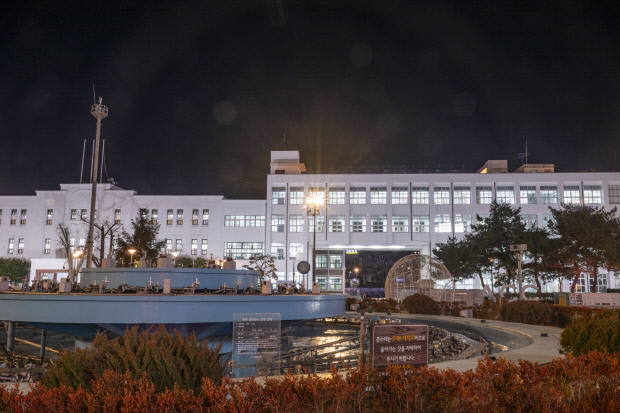 [오늘의포토] 복원 공사 막바지…불 밝힌 옛 전남도청