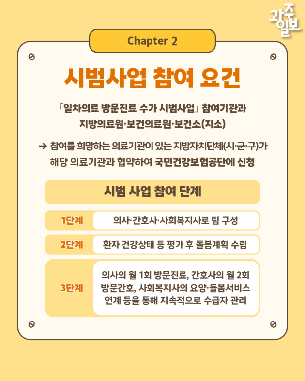 모집기간은 28일까지로, 참여 대상은 일차의료 방문진료 수가 시범사업 참여기관과 지방의료원·보건의료원·보건소(지소)이다.