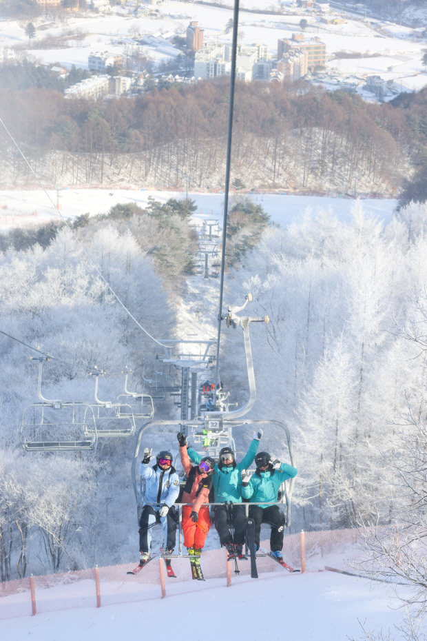![]() 휘닉스파크 리프트에 탑승한 스키어들. |