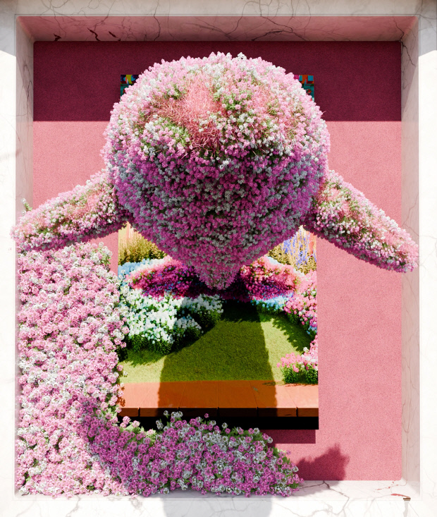 이수진의 ‘감각의 교차점’은 아기자기한 꽃으로 장식한 인형의 모습을 구현한 듯하다. 외형상 인형으로 보이지만 실상은 인형을 닮은 작은 동산을 표현한 것 같기도 하다. 인공과 자연이 절묘하게 조화를 이뤄 관람객들에게 미소를 짓게 한다.