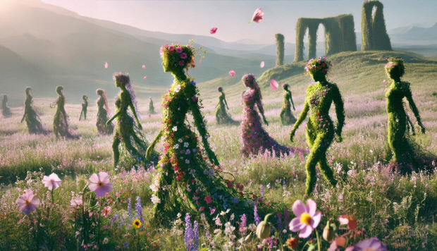 박상화의 ‘포스트네이처’는 환상적이면서도 신비로움으로 가득하다. 푸른 산등성이를 배경으로 서 있는 여성들은 모두 푸른 잎과 꽃들로 치장하고 있다. 코스모스와 들꽃으로 둘러싸인 정경은 훼손되지 않는 자연의 아름다움을 상징한다.