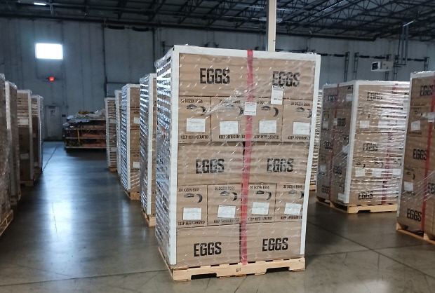 ![]() 미국산 신선란 1항차 물량이 지난 23일 인천공항에 적재돼 있다. <aT 제공> |