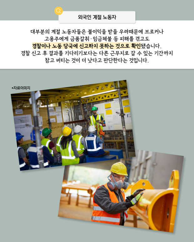 법무부는 ‘개정 출입국관리법’을 시행해 불법 알선·중개를 금지하고 위반 시 징역형이나 벌금을 부과하도록 했으나, 해외에서부터 금품 갈취 등을 당한 사례가 이어졌던 것으로 나타났다.