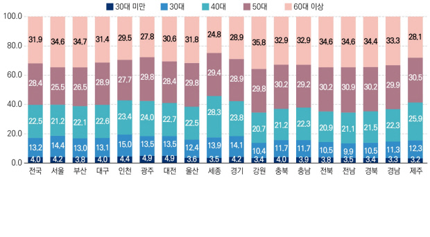 ![]() ■지역별 개인사업자 연령대 비중<단위:%·자료:국회미래연구원> |