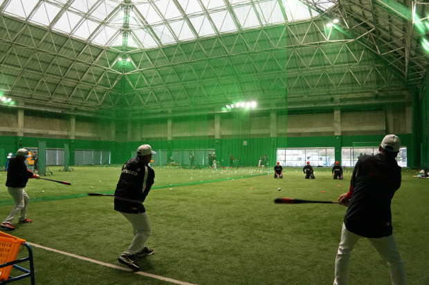 31일 KIA 타이거즈의 스프링캠프가 마련된 일본 아마미오시마에 많은 비가 내리면서 실내에서 훈련이 진행됐습니다.